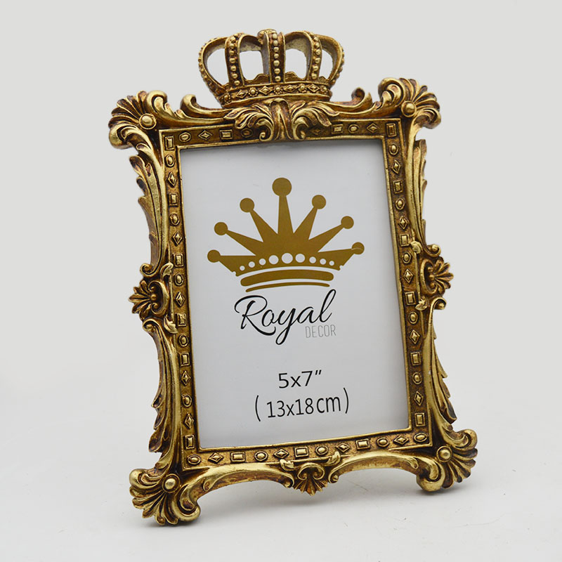 We provide high-quality polyresin photo frames with a vintage baroque design. This Model 1772 features a hand-painted antique blue and gold finish, suitable for home decor retailers, gift shops, and wedding supply distributors. The product combines durable resin construction with a real glass front, ensuring high perceived value for your end customers.