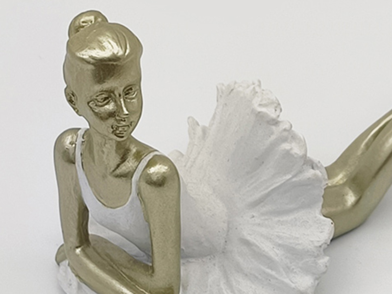 Material and Color: Made of resin material. The skin and body parts of the dancers are in champagne gold metallic texture. The ballet dress and shoes are pure white. The contrast of gold and white creates a simple and elegant look, with a smooth and fine surface texture.