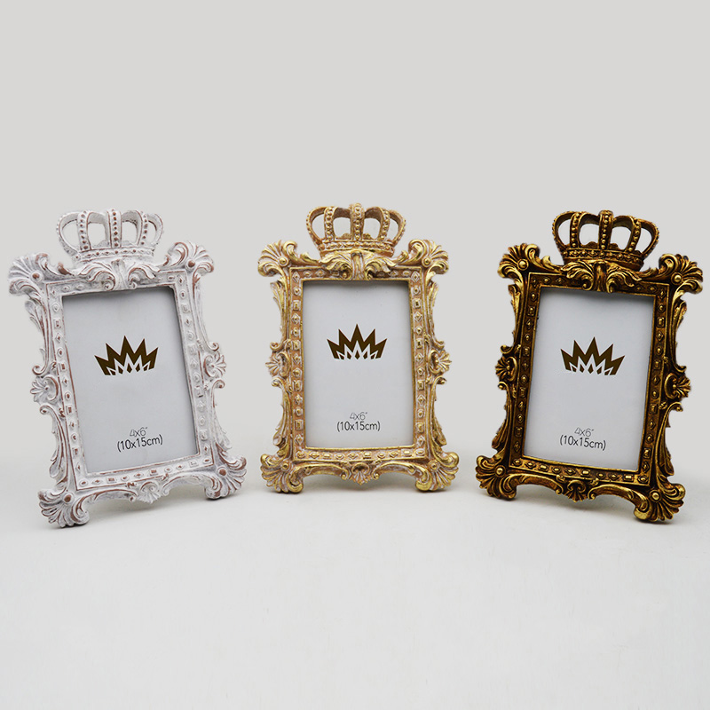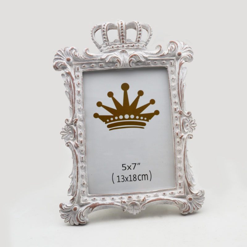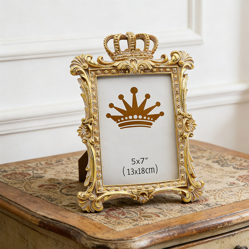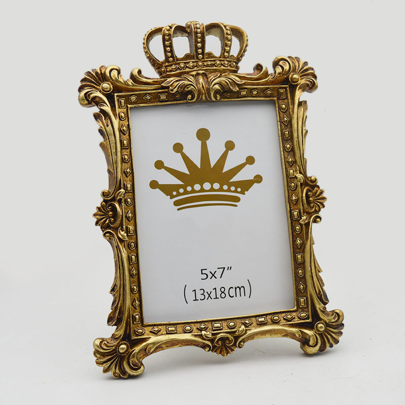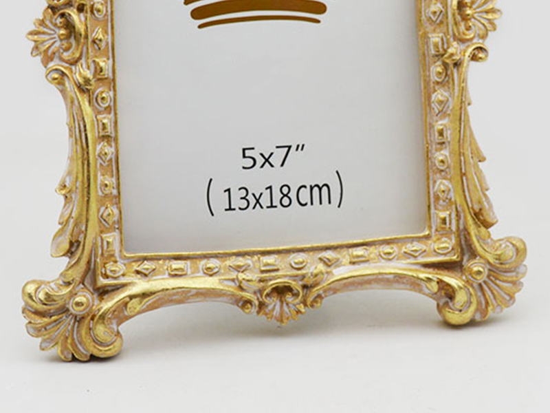 We provide high-quality polyresin photo frames with a vintage baroque design. This Model 1789 features a hand-painted antique blue and gold finish, suitable for home decor retailers, gift shops, and wedding supply distributors. The product combines durable resin construction with a real glass front, ensuring high perceived value for your end customers.