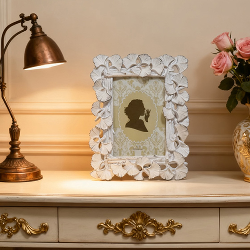 We provide high-quality polyresin photo frames with a vintage baroque design. This Model 1768 features a hand-painted antique blue and gold finish, suitable for home decor retailers, gift shops, and wedding supply distributors. The product combines durable resin construction with a real glass front, ensuring high perceived value for your end customers.