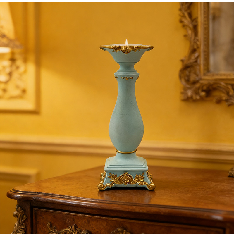 The relief design on the base corresponds to the carved patterns on the top, following the symmetrical aesthetics of European style. The gilded parts are given a slight aging treatment to create a retro court atmosphere