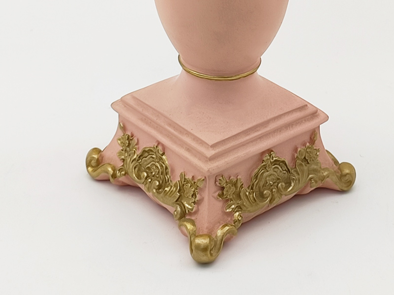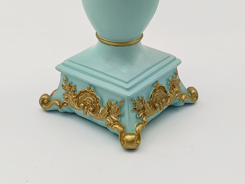 - The base is in a square design, with gilded three-dimensional relief decorations (creeping grass pattern / water lily pattern) on the corners, enhancing the overall stability and retro texture; the column body is decorated with gilded lines, improving the detail refinement.
