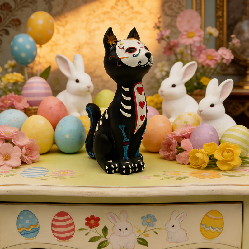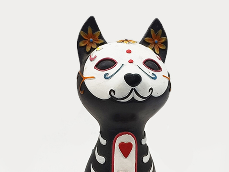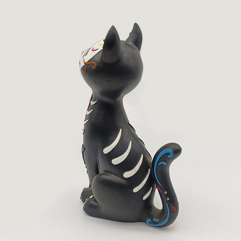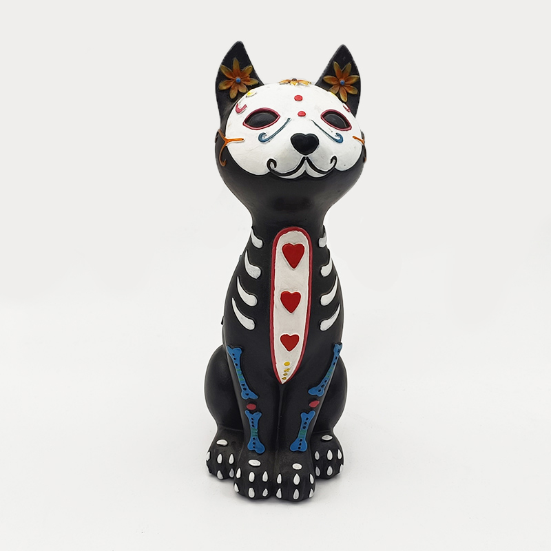 ♥ Resin figurine of painted skeleton cat for Halloween ♥ High-density environmental friendly resin ♥ Hand-carved mold + layered detailed painting + retro aging treatment. The cat's posture, the skeleton patterns and the painted details are precisely recreated, with a natural and transparent color transition |