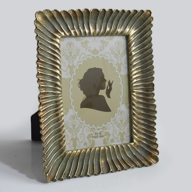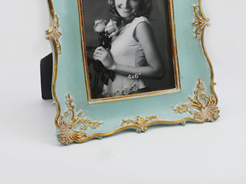 We provide high-quality polyresin photo frames with a vintage baroque design. This Model 1767 features a hand-painted antique blue and gold finish, suitable for home decor retailers, gift shops, and wedding supply distributors. The product combines durable resin construction with a real glass front, ensuring high perceived value for your end customers.