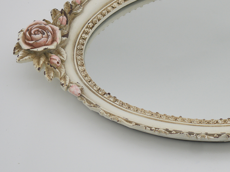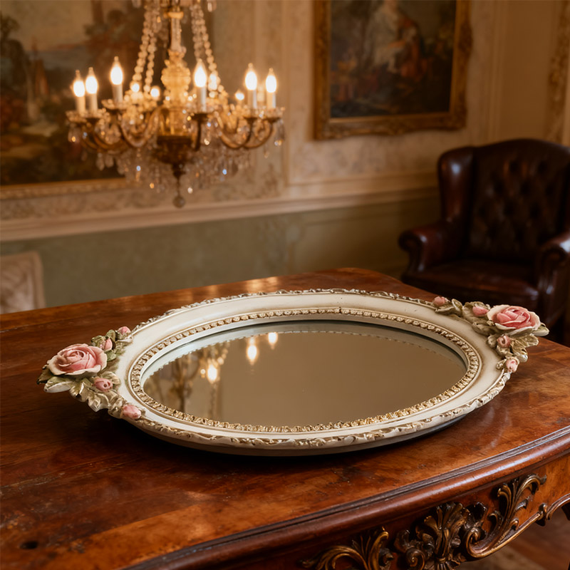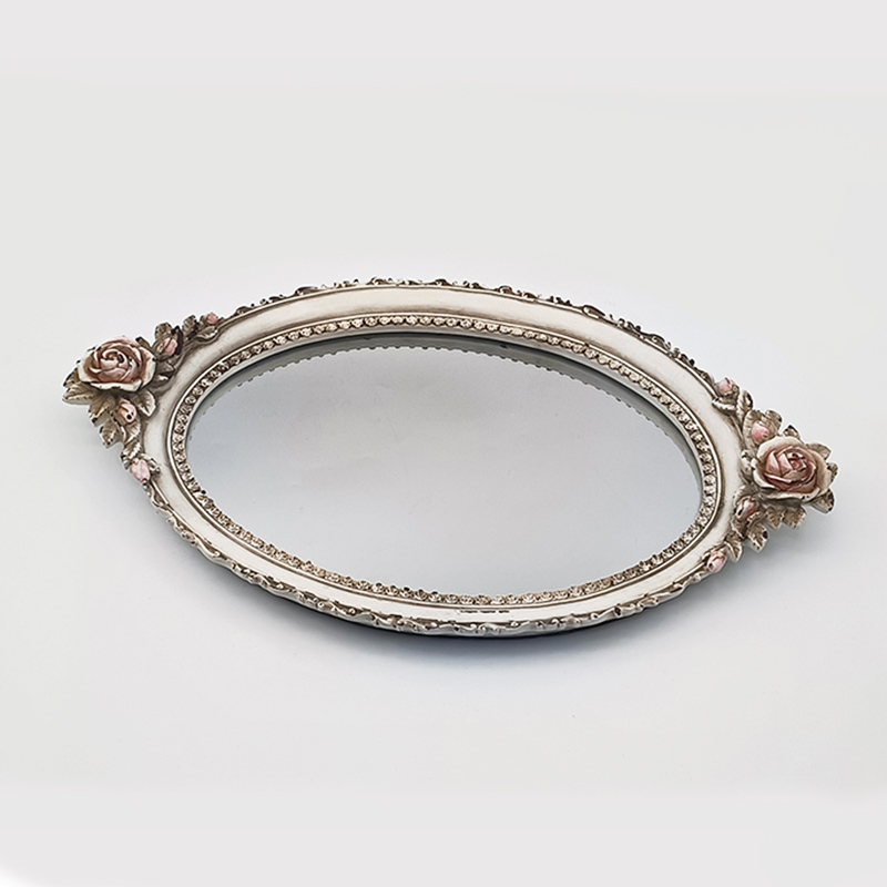 ♥ The border is crafted using a three-dimensional relief technique, featuring scroll patterns and rose designs ♥The main body of the tray is a distressed white color. ♥ Combination of resin material and aging technique |
