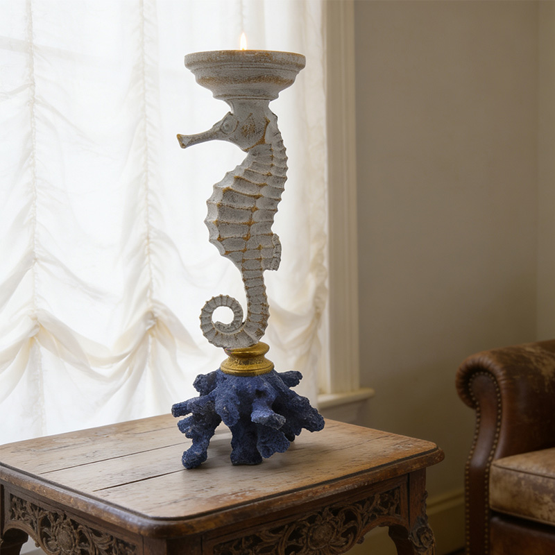 - The connection between the seahorse and the coral base is decorated with a golden metallic finish ring, with exquisite craftsmanship, serving as a visual transition and embellishment.